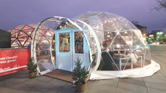 Introduction of this season, a 8 meter diameter dome of 50 m2 – GLAMPING DOME. One can watch the sunsets through the dome window during any weather. The dome is adapted for air temperatures of -30 to +80 degree Celsius and has a THERMIC.PRO13+ thermal membrane.