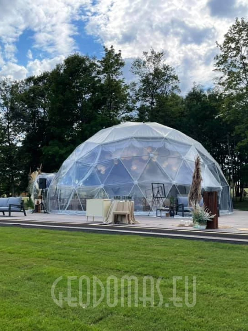 The “VIP Dome” project in Liutonys, Lithuania, is a distinctive and exclusive space designed for events, conferences, and other special occasions. The dome itself covers an area of 254 square meters, complemented by a VIP loft space of 100 square meters. Nestled in the picturesque Degučiai Valley, this modern structure is built using cutting-edge technology, offering a sense of luxury and elegance.
