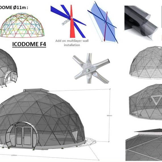 The geodesic dome structure allows you to create a light, well protected and very stable space. The main advantage of geodesic domes is the even distribution of stresses in all frame nodes.