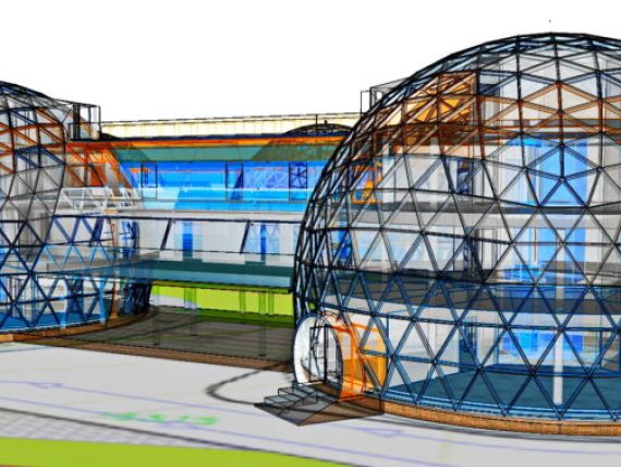 Transparent domes, as a building element, or the whole building dome-shaped, with parts of the façade as parts of a sphere. Irregular-shaped or Free Form Building construction.