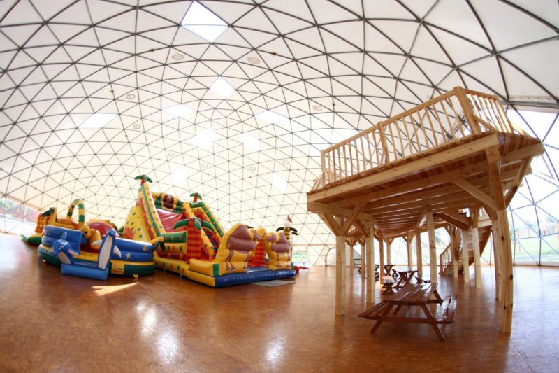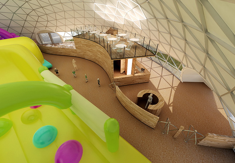 Pagrindinis Ø34m kupolas tapo visaverčiu vaikų pasauliu. Jame įrengta erdvi žaidimų zona, laipiojimo ir edukacijos erdvės, scena pasirodymams, didelė kavinė su terasa ir net antresolė, iš kurios atsiveria visas vaizdas į kupolo vidų bei aplinką.