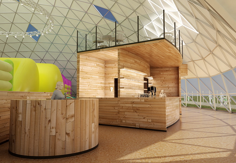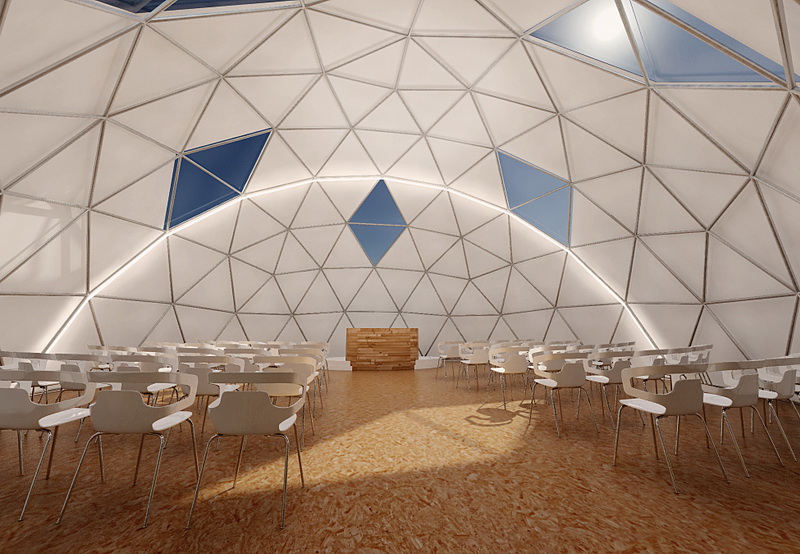 Projekte įgyvendinti trys geodeziniai kupolai – pagrindinis Ø34m kupolas su 707m² ploto erdve ir net 11 metrų aukščiu, jungiamas su Ø12m (113m²) edukaciniu kupolu bei Ø8m (50m²) pagalbiniu moduliu. Ši erdvinė kompozicija sukuria natūralų srautą tarp veiklų, vaikų edukacijos ir poilsio zonų.