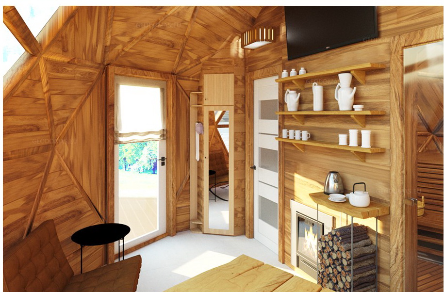20m2 Sauna Dome Ø5m Geodesic Wooden Dome Height 3,5m