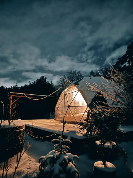 Our insulated domes are designed to offer maximum comfort in any weather. The advanced insulation ensures a pleasant indoor climate, keeping guests warm in winter and cool in summer. Each dome is equipped with modern facilities, including heating, comfortable bedding, and private bathroom amenities, ensuring a convenient and enjoyable stay.