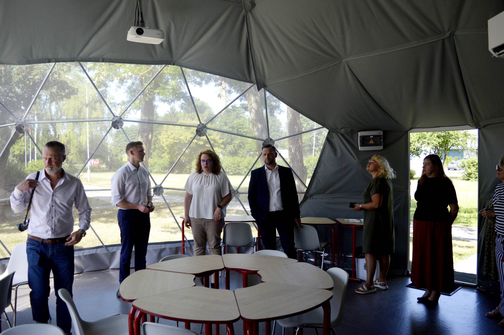 50m² Ø8m glamping kupolas mokyklos teritorijoje – tai daugiau nei tik klasė. Tai atvira erdvė, kurioje vyksta gamtos tyrinėjimai, meniniai projektai, neformalios veiklos ir bendruomenės susitikimai. Kupolas aprūpintas modernia šildymo ir vėdinimo sistema „oras–oras“, elektros instaliacija, interneto ryšiu bei projektoriumi, leidžiančiu naudoti jį visus metus, net ir esant sudėtingoms oro sąlygoms.