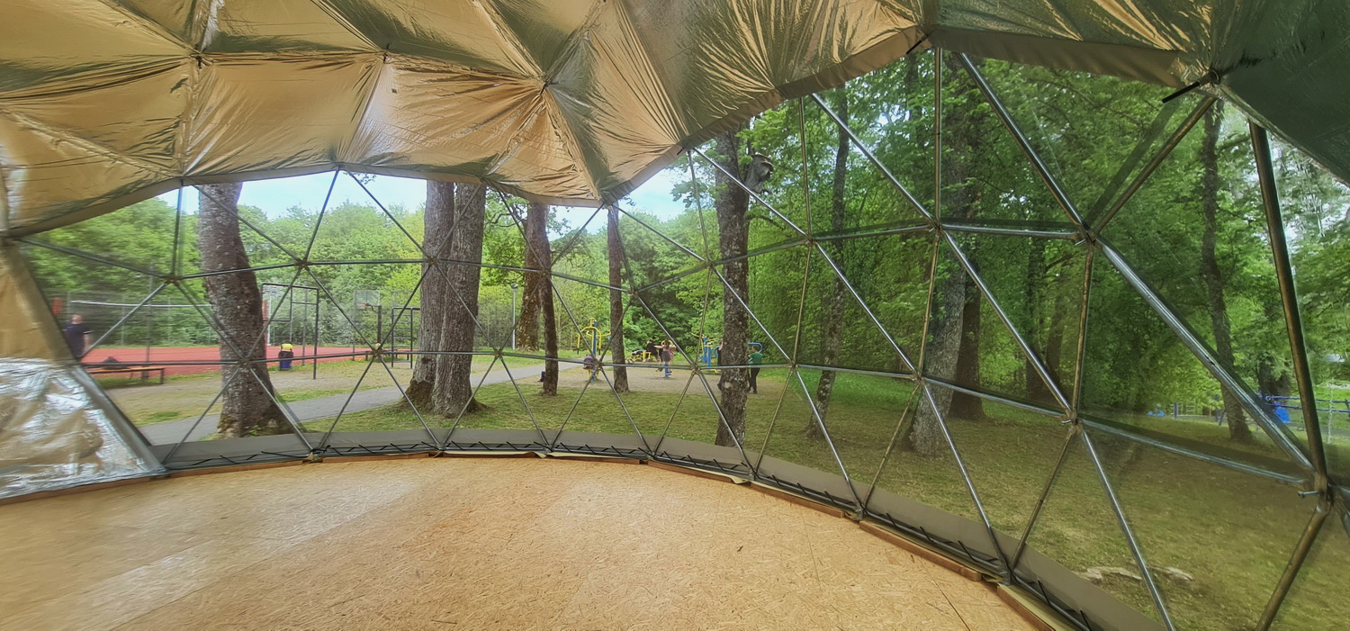 Naujoji lauko klasė kupole – tai žingsnis į priekį, jungiantis praeities pamokas ir ateities vizijas. Įrengtas 50m² Ø8m kupolas ne tik simbolizuoja ekologinį tvarumą ir modernumą, bet ir suteikia galimybę organizuoti pamokas lauke ištisus metus. Čia įrengta elektra, šildymo-vėdinimo sistema, modernūs mokymo įrenginiai, leidžiantys mokiniams saugiai ir komfortiškai mokytis net atšiauriomis oro sąlygomis.