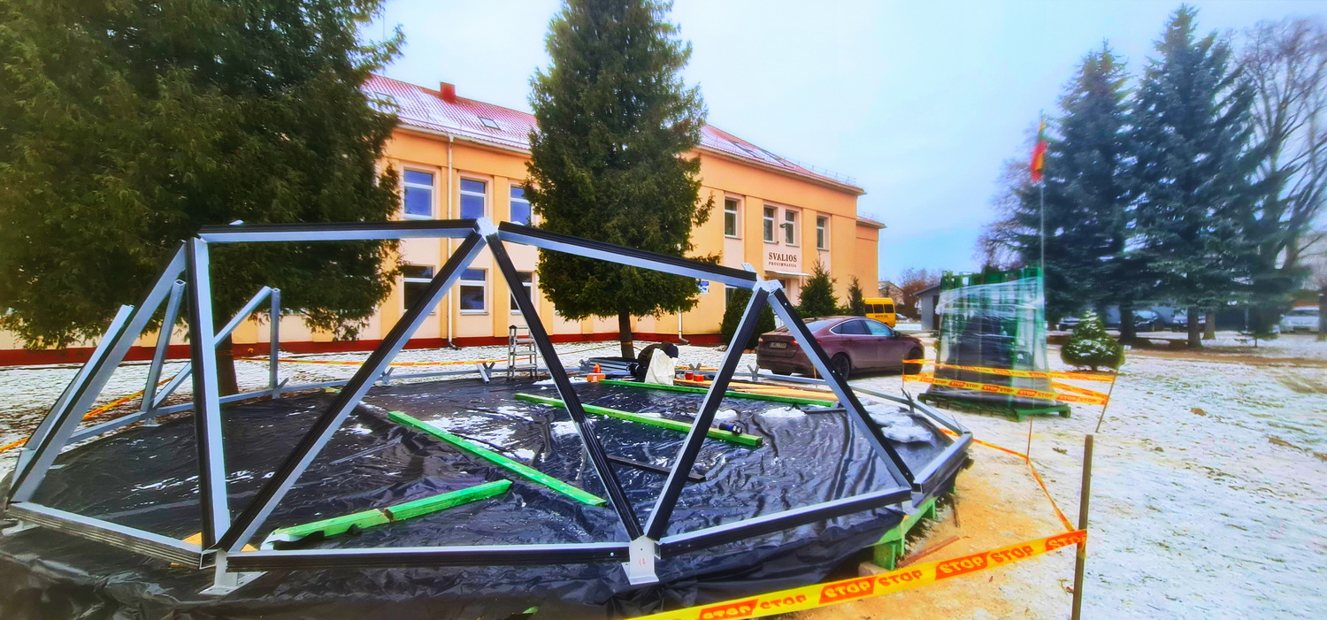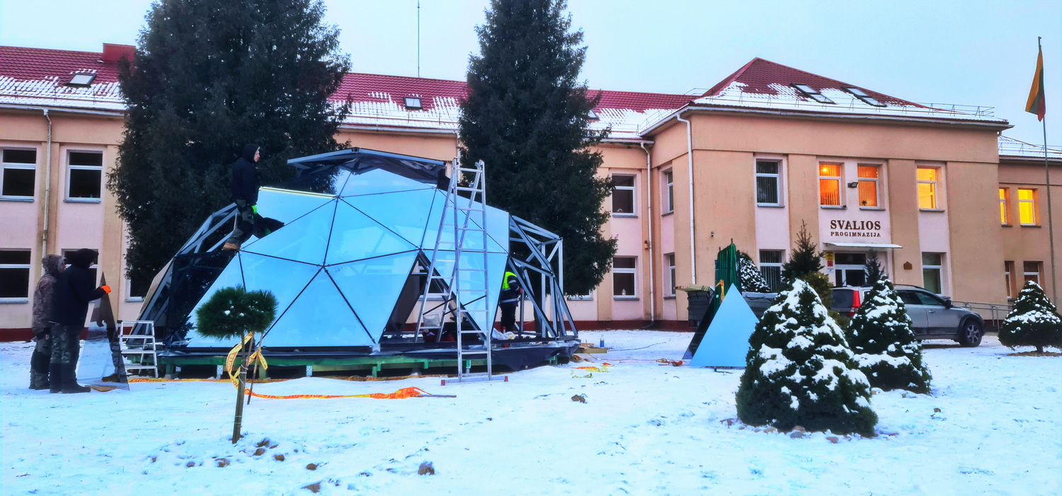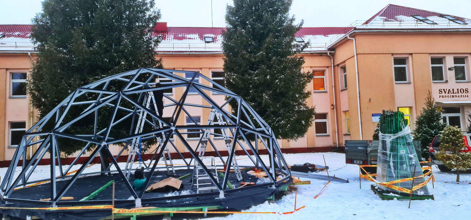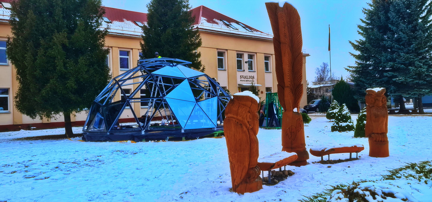 50m2 STIKLINĖ Lauko Klasė Ø8m Kupolas | Pasvalio Svalios progimnazija