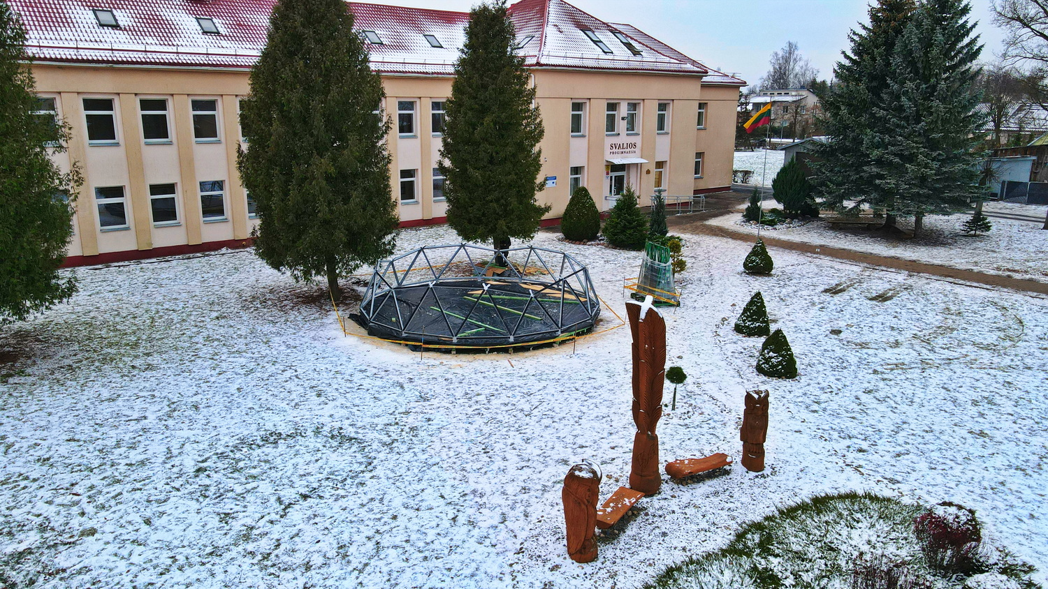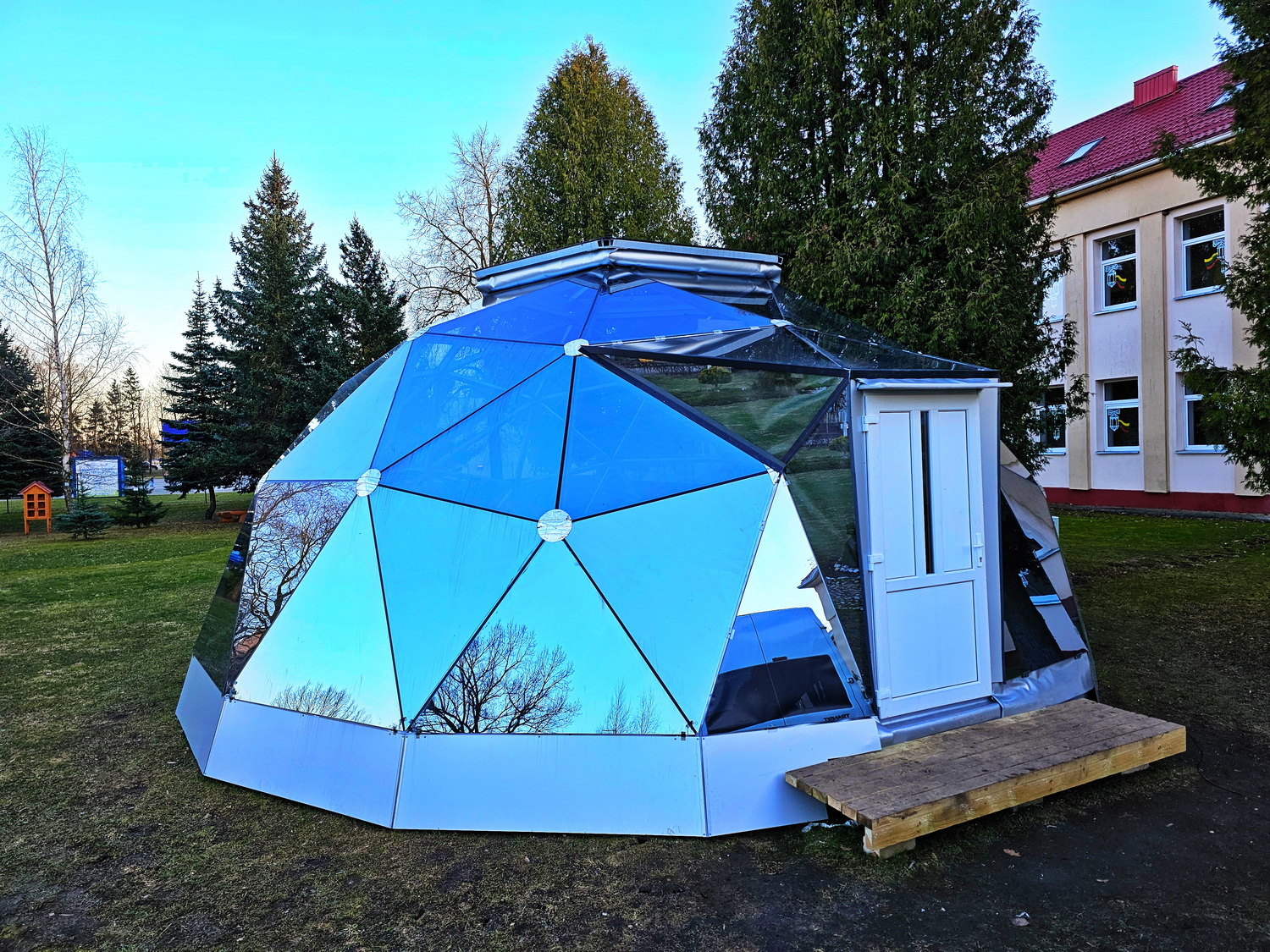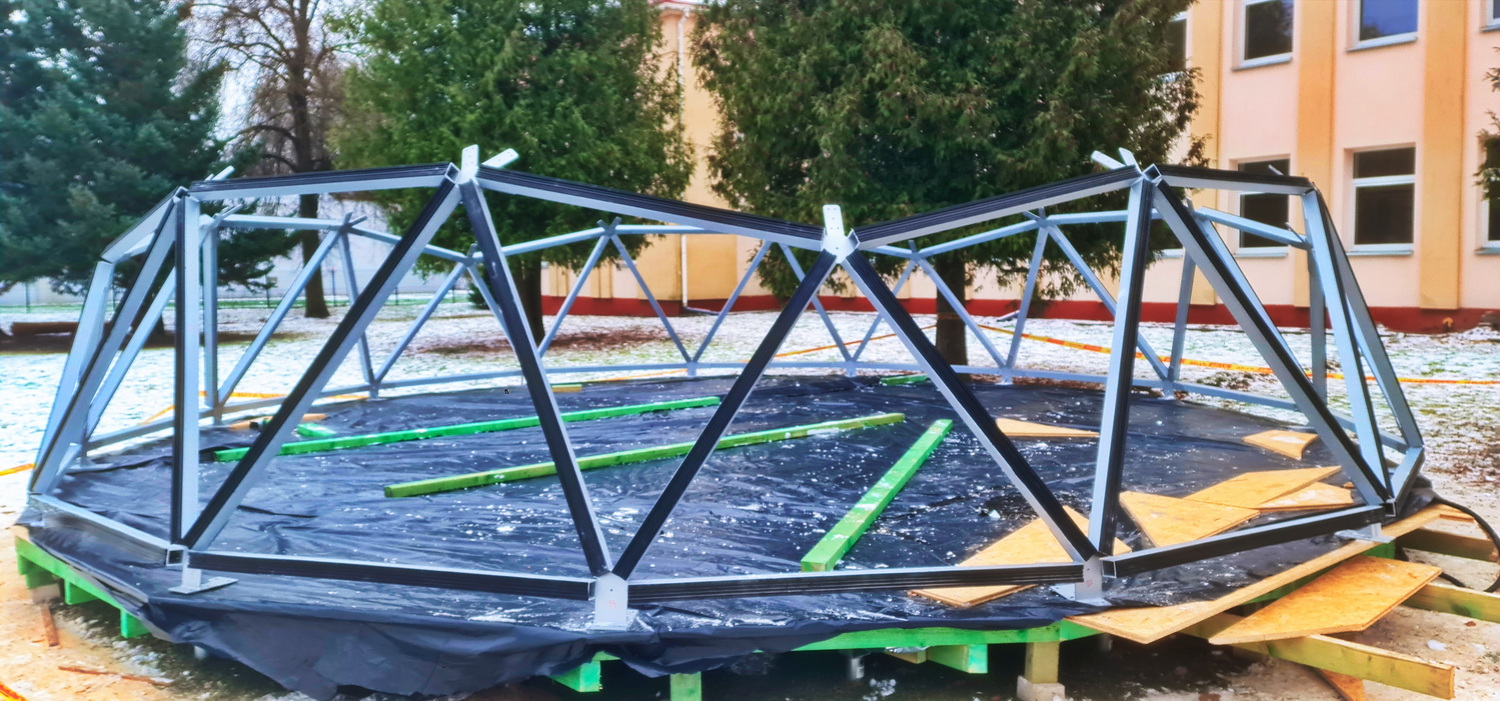 50m2 STIKLINĖ Lauko Klasė Ø8m Kupolas | Pasvalio Svalios progimnazija
