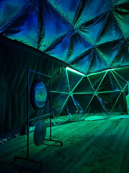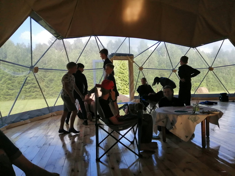 Didysis Ø11m kupolas stovykloje – tai ne tik erdvė, bet ir simbolis. Čia vyksta mankštos, meditacijos, meno dirbtuvės, garso terapijos, kvėpavimo pratimai, žaidimai, kūrybinės veiklos, pokalbiai prie simbolinio vidaus laužo, filmų peržiūros ir naktinės refleksijos. Kupolas tampa vieta, kur galima pasislėpti nuo vėjo ar lietaus, tačiau vis tiek jaustis gamtos dalimi.