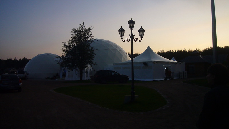 Du geodeziniai kupolai – Ø20m ir Ø13m – sujungti į vieningą pokylių erdvę. Jie pastatyti naudojant nerūdijančio plieno konstrukcijas su GEODOMAS “TUBE” sistema. Kupolai uždengti baltu PVC tentu, su permatomais segmentais, leidžiančiais dienos šviesai patekti į vidų, tuo pačiu užtikrinant eleganciją ir šviesos žaismą.
