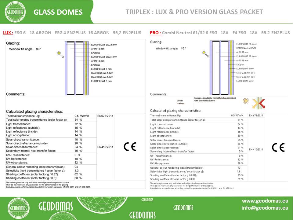 Our Panoramic series domes are designed to offer an exceptional all-season living experience with double-glazed glass panels, providing unmatched transparency and insulation. These domes are ideal for those looking to combine modern aesthetics with high functionality. The domes are equipped with high-end triangular double-glazed glass panels, also known as thermo packets, which provide superior thermal properties.