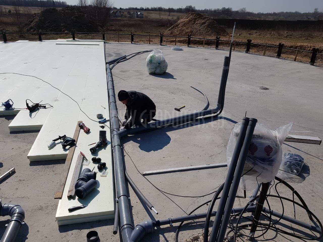IZOputos® is sprayed with the use of high-pressure equipment heating the components and mixing them in voluminous proportion 1:1. The main application of the foam is thermal, hydro- and acoustic insulation of industrial or civil buildings, houses, farms, ships, containers, refrigerators, etc.