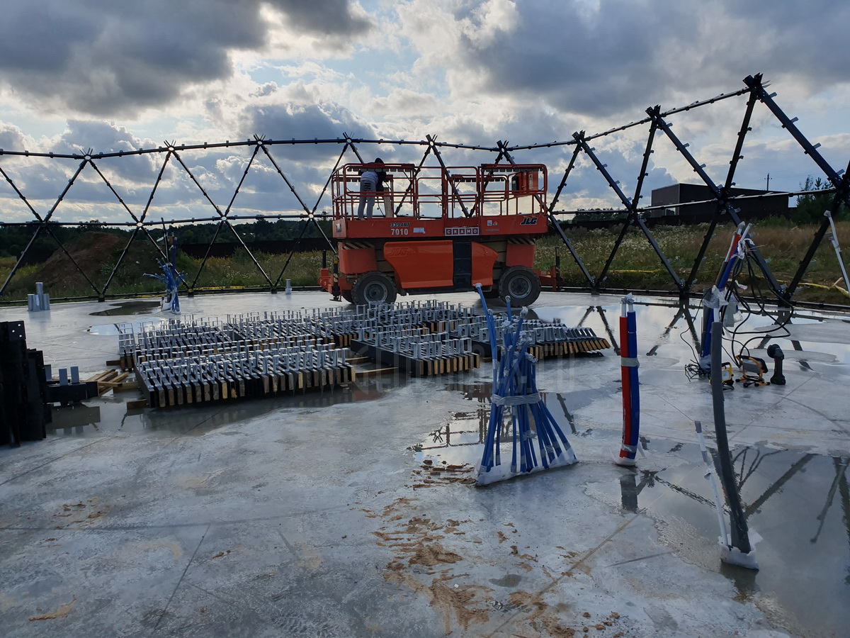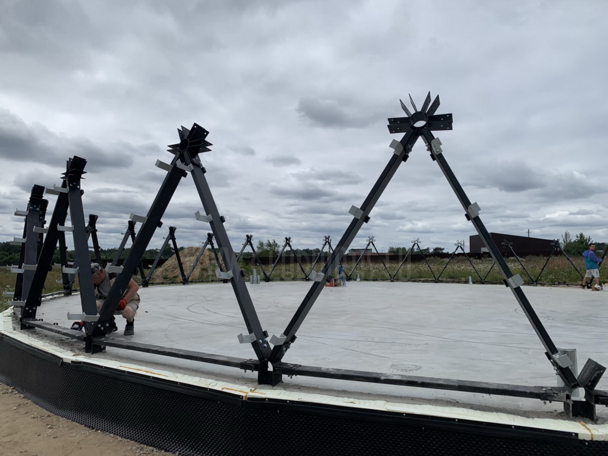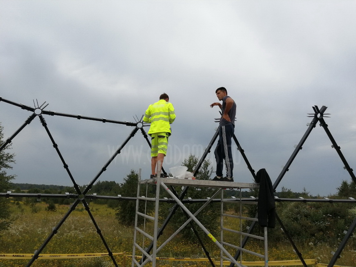 Possibility of winter construction or “dry” technology. Building a wooden house apart from the foundations does not require wet processes such as masonry and concreting, so the house can be built regardless of seasonality. In construction, all elements are connected in a dry way (with wood screws, nails, etc.), so there is no need to wait for the material to dry, it is possible to work continuously. The spherical shape of a geodesic dome provides for natural and efficient interior air circulation.