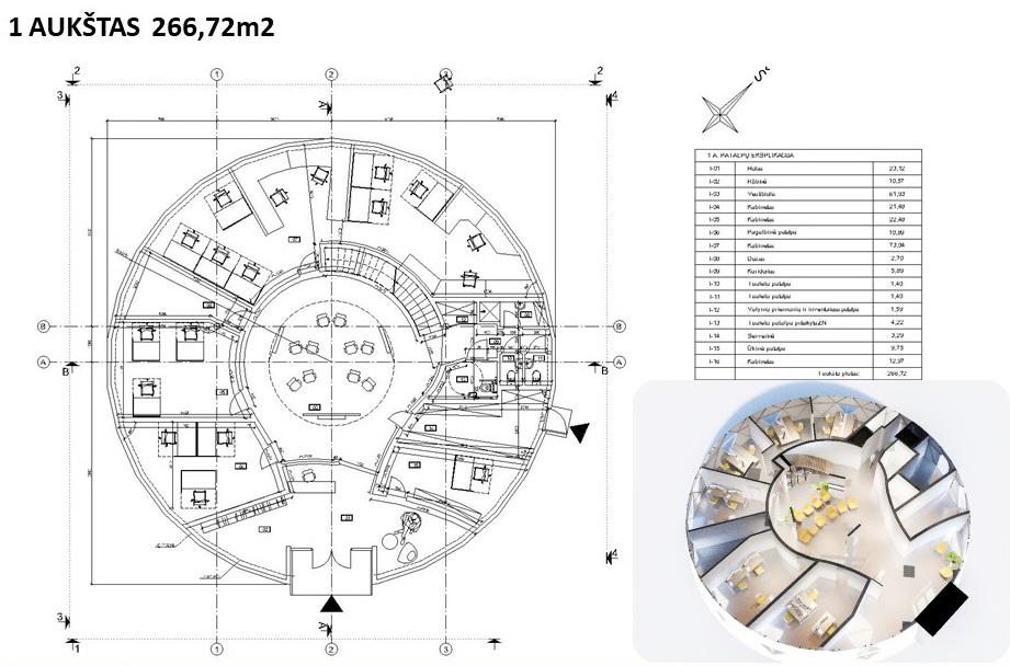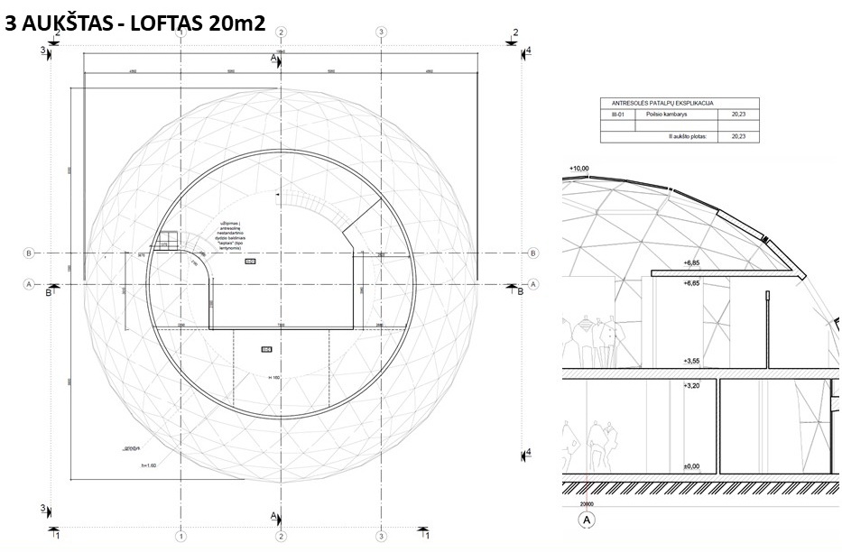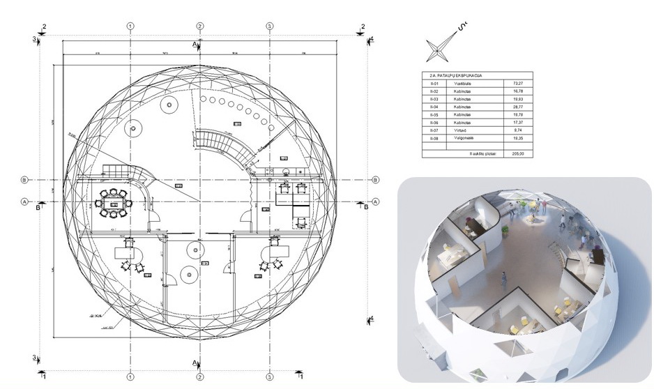 470m2+Loft Office building | Ø20m H10m F6 Dome | Vilnius, Lithuania