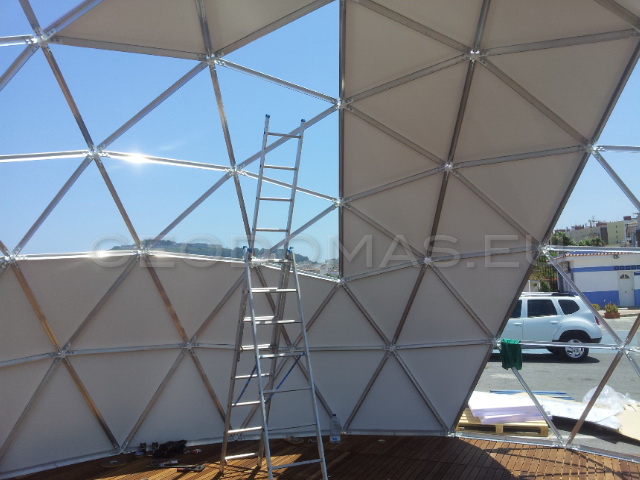 Kupolo rėmas buvo pagamintas iš tvirto, tačiau lengvo aliuminio, naudojant GEODOMAS STAR sistemos stebules. Tai užtikrina konstrukcijos patikimumą net esant pakrantės klimato iššūkiams – drėgmei, vėjui ir temperatūrų pokyčiams.