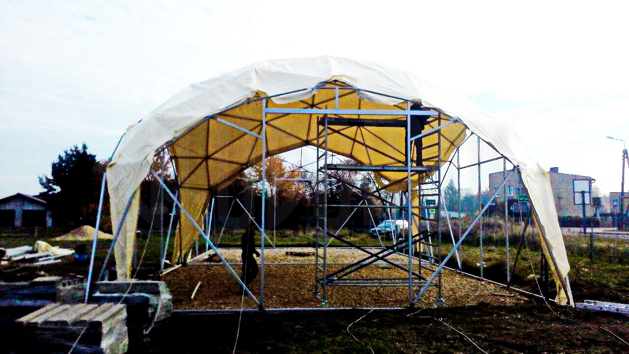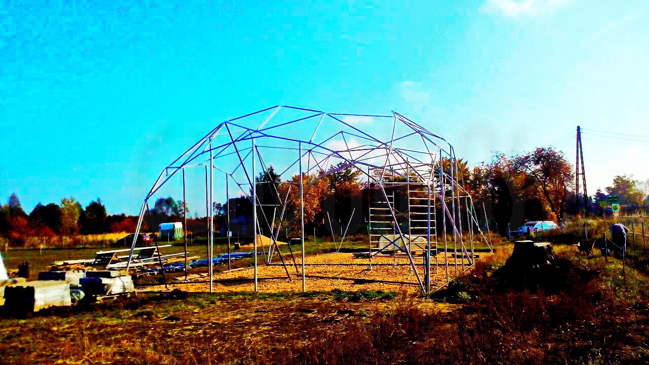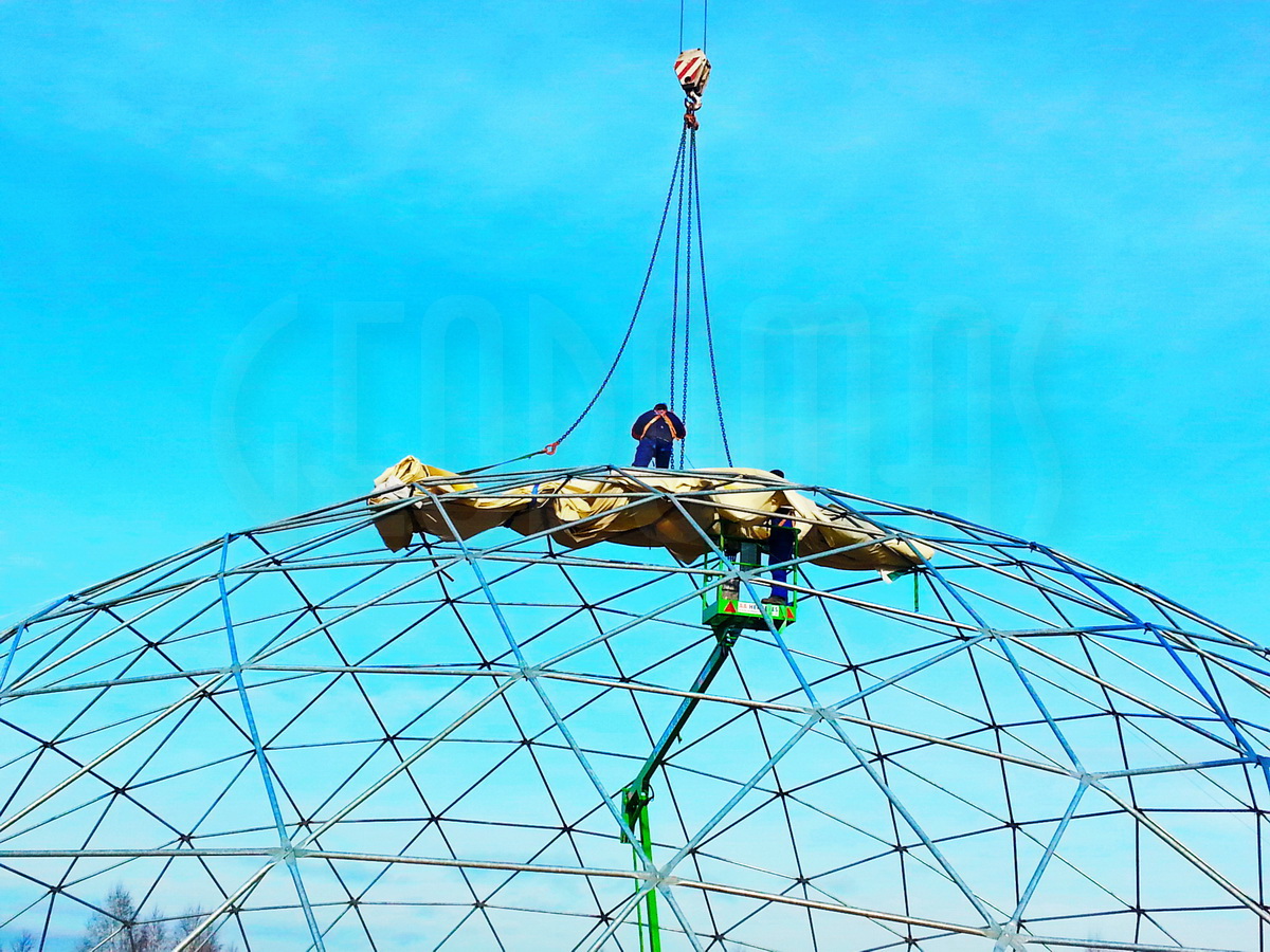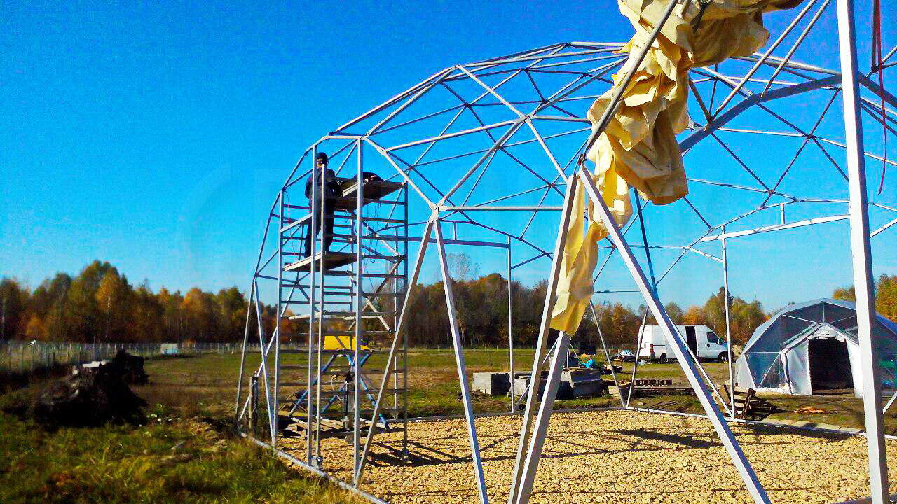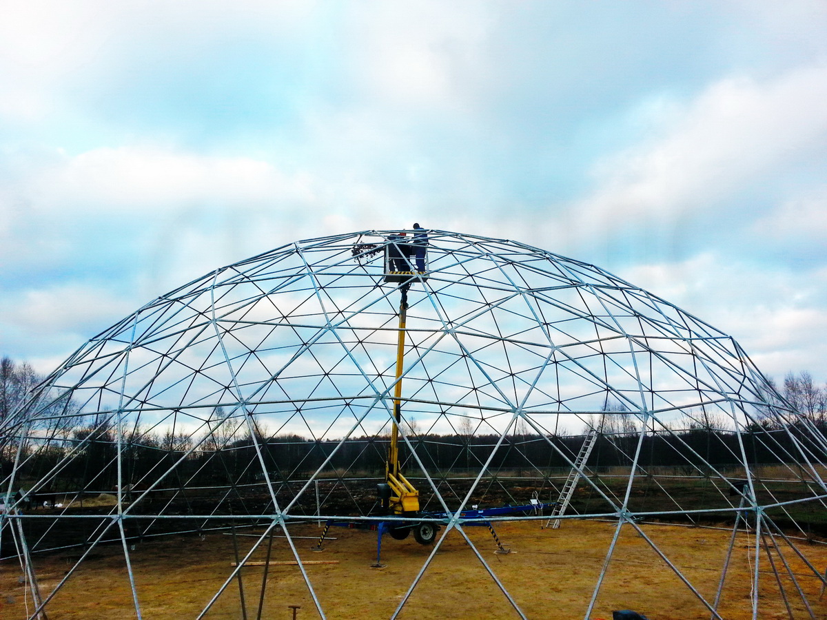Kupolo rėmas pagamintas iš tvirtų plieninių vamzdžių, užtikrinančių stabilumą net sudėtingomis oro sąlygomis. Konstrukcija suprojektuota pagal GEODOMAS standartus, laikantis Eurokodų reikalavimų ir pritaikyta didelėms apkrovoms.