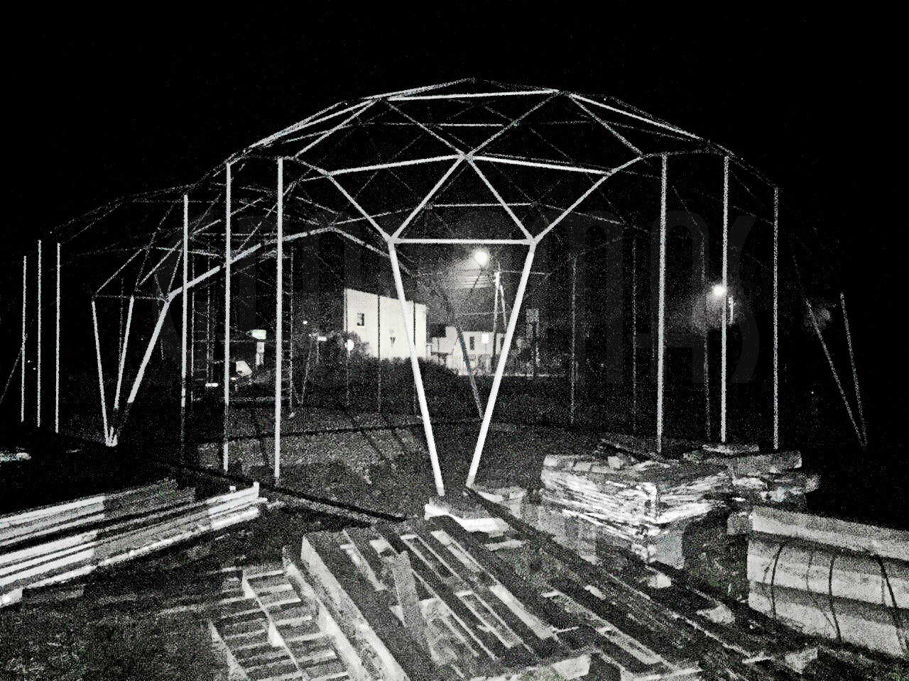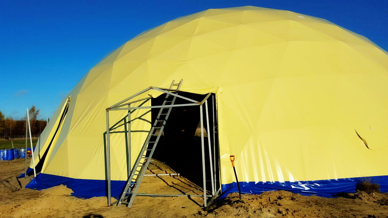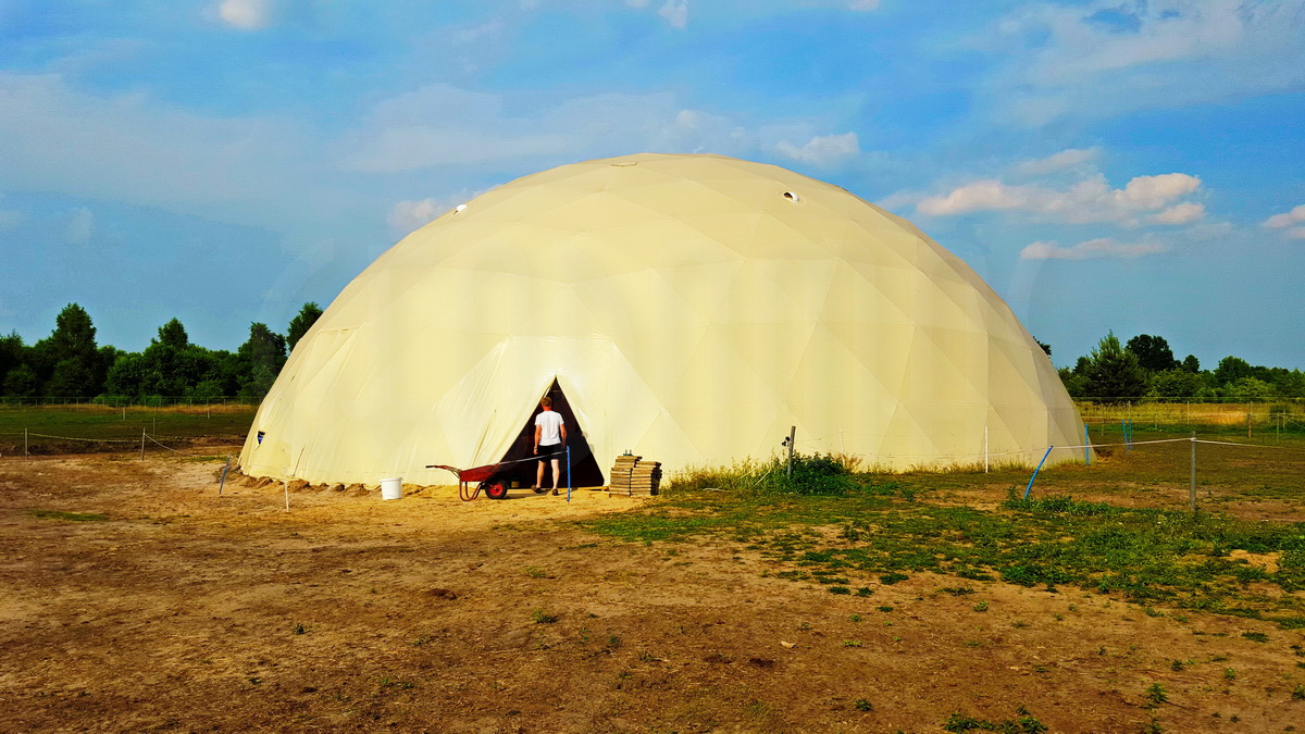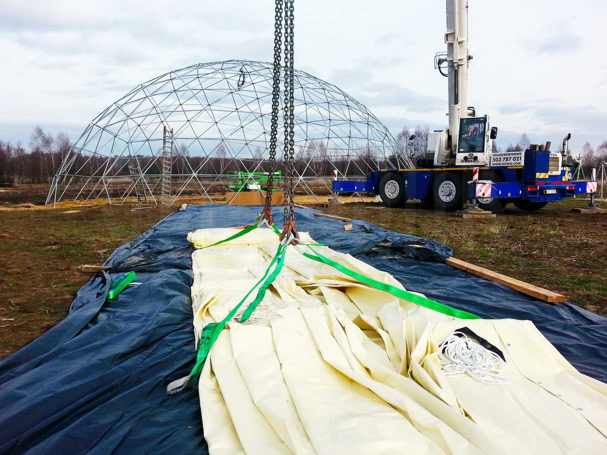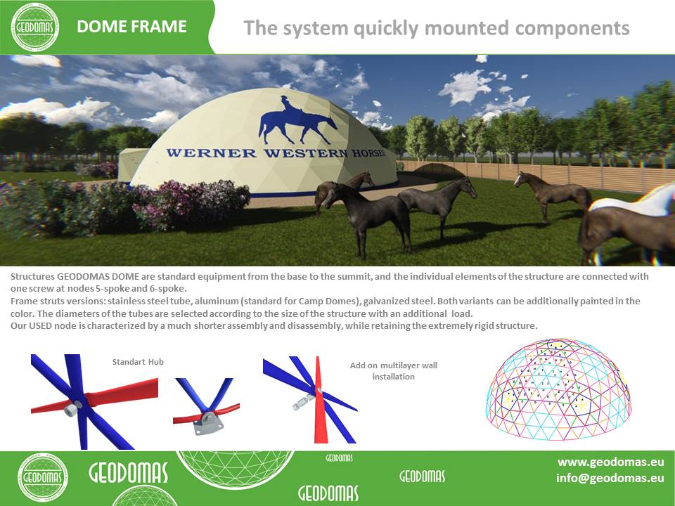 Kupolo rėmas pagamintas iš tvirtų plieninių vamzdžių, užtikrinančių stabilumą net sudėtingomis oro sąlygomis. Konstrukcija suprojektuota pagal GEODOMAS standartus, laikantis Eurokodų reikalavimų ir pritaikyta didelėms apkrovoms.