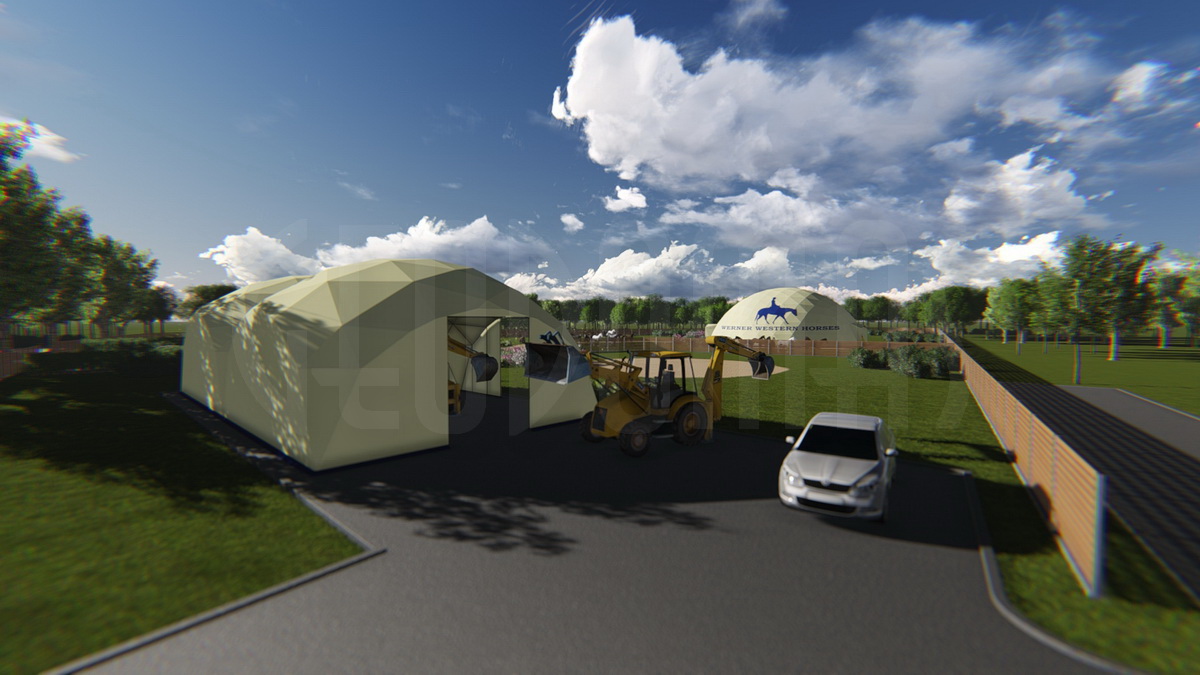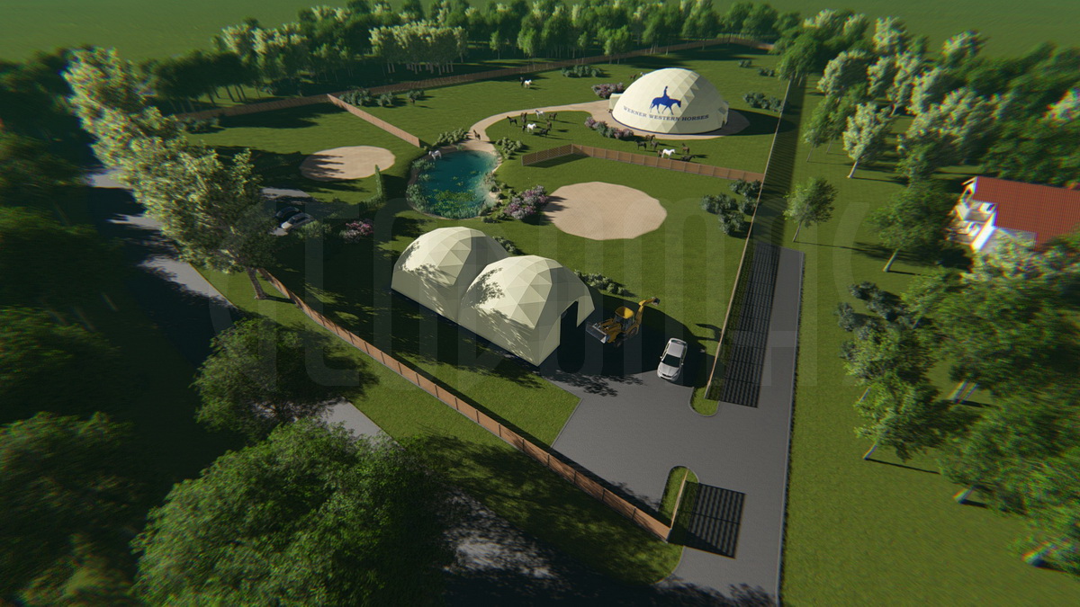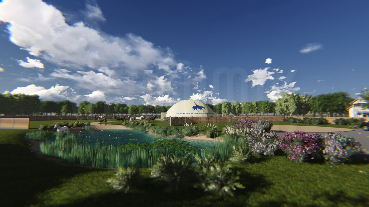 WERNER WESTERN HORSES – tai ne tik žirgynas, bet visa jojimo filosofija, sukurta modernioje aplinkoje. Kupolas Ø24m skersmens tapo širdimi viso komplekso – tiek sportui, tiek laisvalaikiui. Didžiulė vidaus erdvė leidžia treniruotis bet kokiu oru.