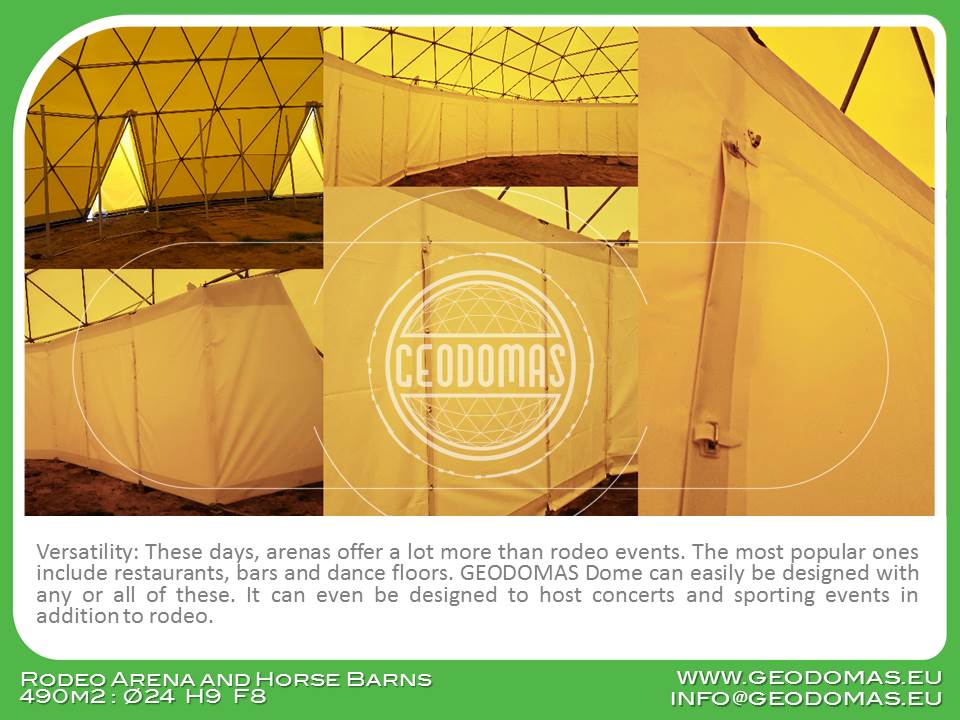 Kupolas tinkamas įvairioms reikmėms: nuo jojimo mokyklų iki elitinių žirgynų, nuo žemės ūkio švenčių iki parodų ir pasirodymų. Toks universalumas paverčia šį sprendimą labai vertingu investiciniu objektu.