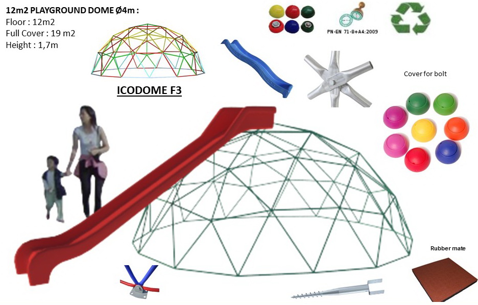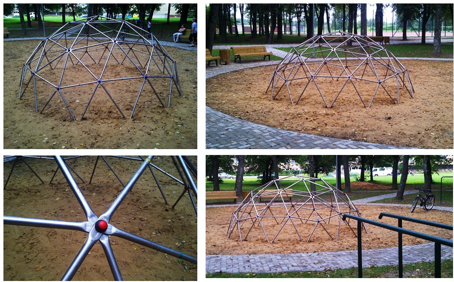 Kupolo formos žaidimų aikštelės yra ilgalaikės. Rėmas gali būti naudojamas iš įvairių medžiagų: