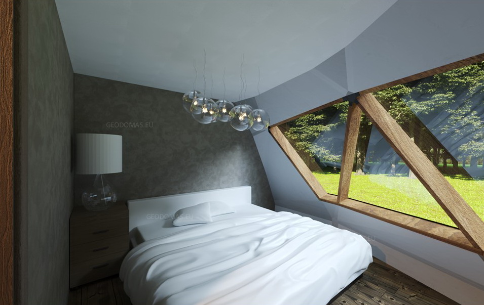 Triangular shaped panels, façade slabs COSMO PANEL 25mm (Basic option), PVC-XPS-PVC structure of panels. Fastening elements for the slabs with a gasket. Installation glue set for seal treatment. White facade sealant-glue for the finishing and decorative works. A tin perimeter window sill for the waterproofing of the foundation. Gravitational ventillation system at the lower perimeter of the dome. A full installation set, and documentation for facade assembly.