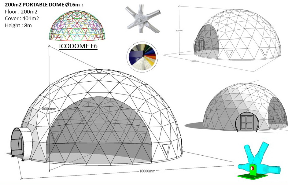 Dome covers we use the highest quality PVC tent fabrics. All our fabrics are certified and meet European Quality and Fire Resistance Standards. Detachable dome coating is known for its strengths and long service life. Due to the frequent weaving, the material is resistant to punctures, scratches and cuts. It is very easy to keep the dome covers clean. GEODOMAS durable covers are available in a variety of colors, resistant to mold and mildew, protected from UV rays and fire resistant. All fabrics have certifications to fire-retardancy NFP 92507: M2 ; DIN 4102: B1; EN 13501-1: B-s2-d0, BS 7837.