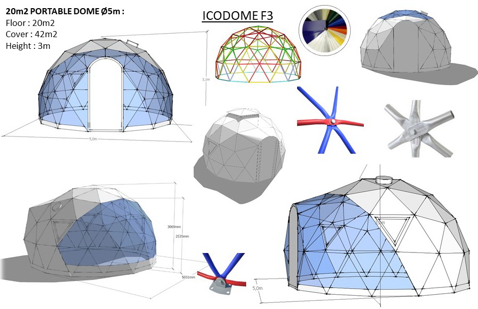 Glamping Domes do not require any columns, load walls or columns inside to allow the customers to use the maximum available area. By using steel structural elements structure becomes sustainable in terms of weather factors, livetime and loads.- The structures can be connected with tunnel paths;