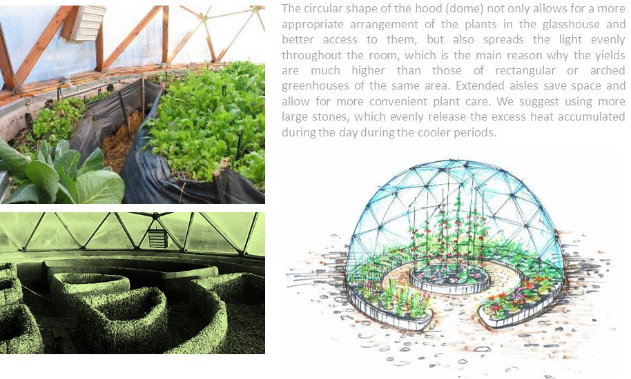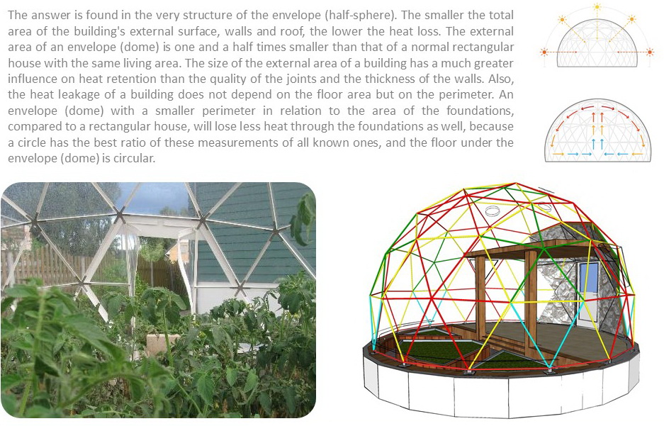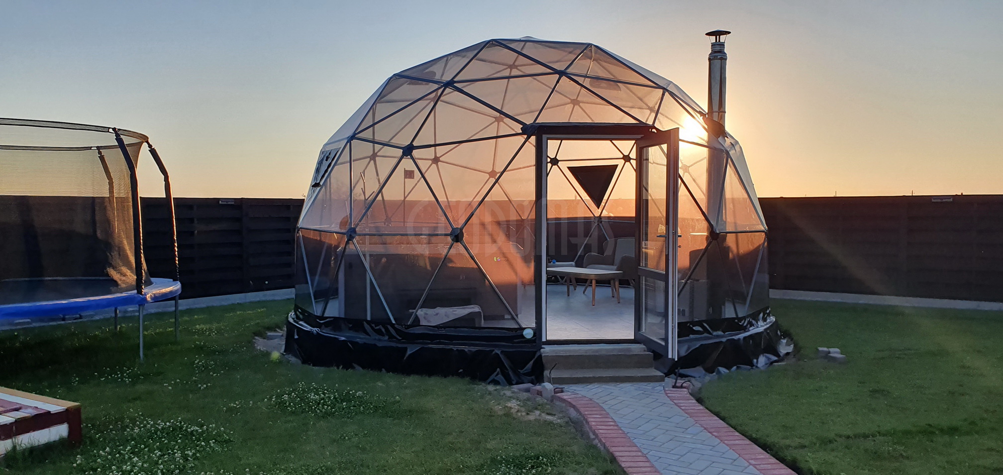 The geodesic dome structure allows you to create a light, well protected and very stable space. The main advantage of geodesic domes is the even distribution of stresses in all frame nodes.