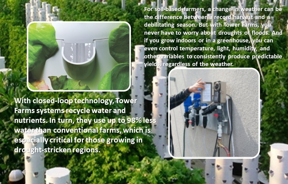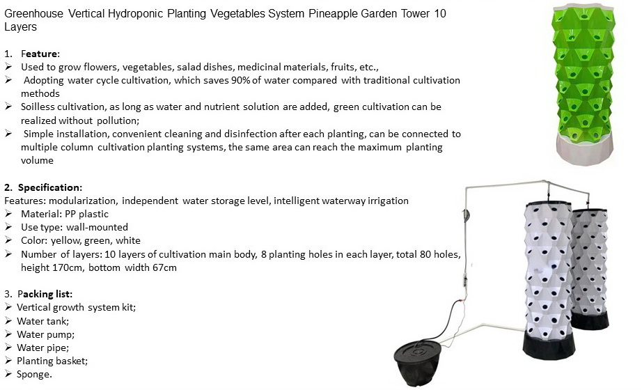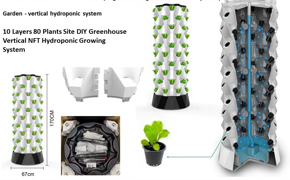 The vertical hydroponic tower actually is aeroponic tower growing system, which is supply plant nutrients by atomizing water.
