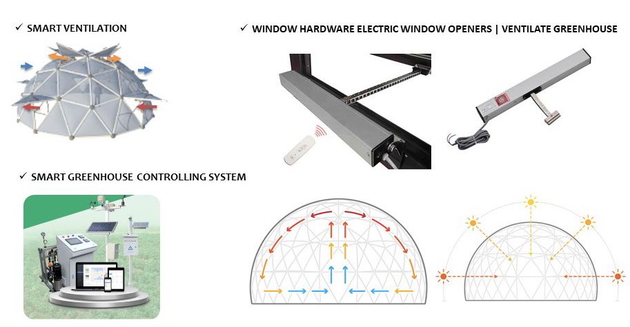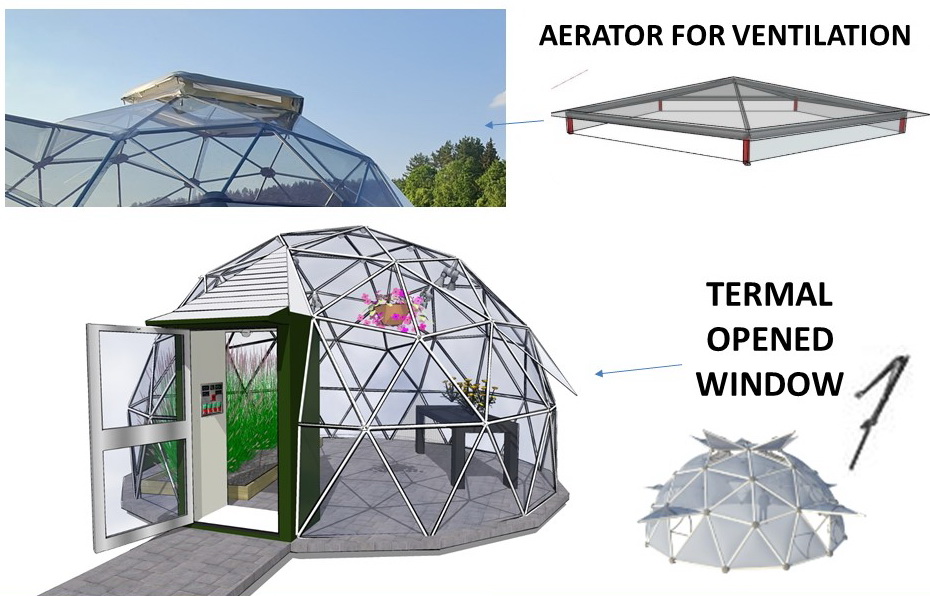 Individual parts of the dome open automatically when the air warms up. This is how the air in the dome is ventilated if the air outside the dome walls is favorable. We have developed an advanced air ventilation system that optimizes air and heat flow well.