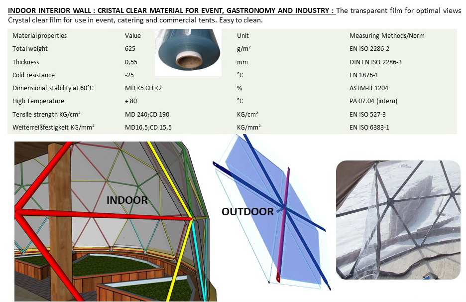 The INDOOR tension multilayer wall creates a 15cm air chamber. This technology allows you to insulate your dome. The air space is constantly ventilated by flows of natural ventilation. Multilayer wall will extend the season of the dome for the whole year.