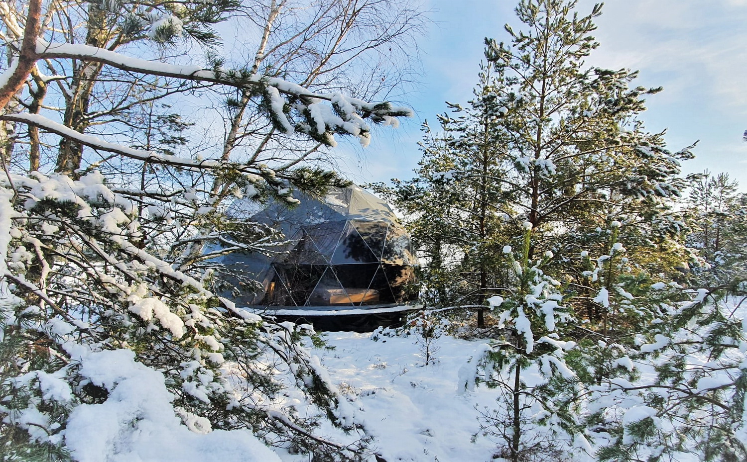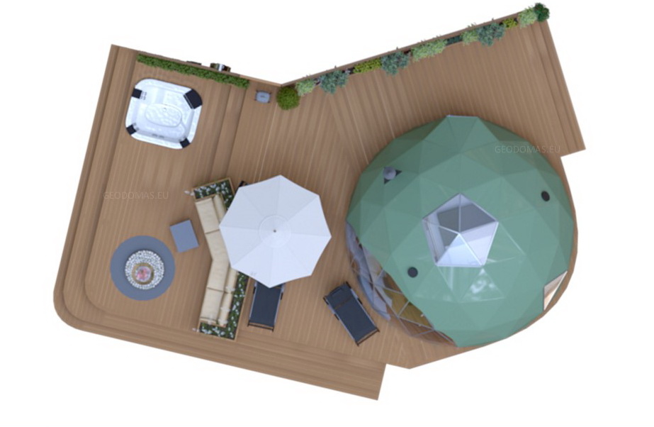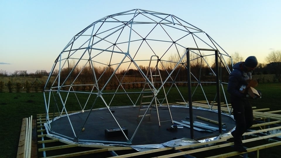 The geodesic dome structure allows you to create a light, well protected and very stable space. The main advantage of geodesic domes is the even distribution of stresses in all frame nodes.