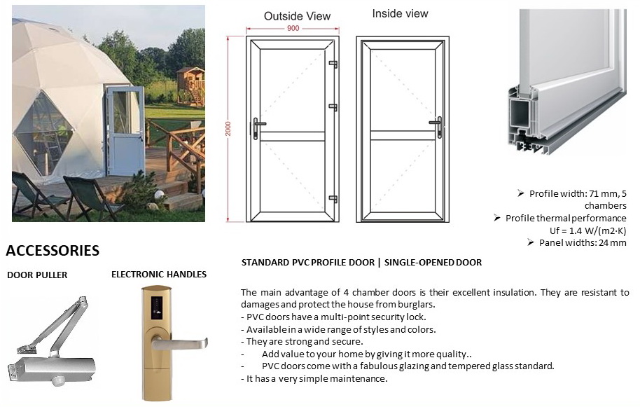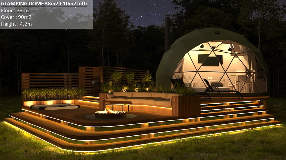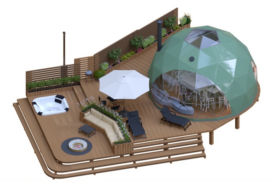 Glamping Domes do not require any columns, load walls or columns inside to allow the customers to use the maximum available area. By using steel structural elements structure becomes sustainable in terms of weather factors, livetime and loads.- The structures can be connected with tunnel paths;