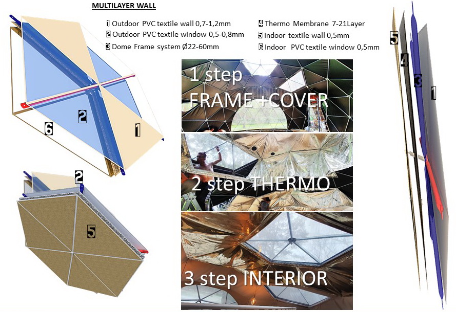 Multilayered thermal insulation of dome wall, with two 100cm chambers