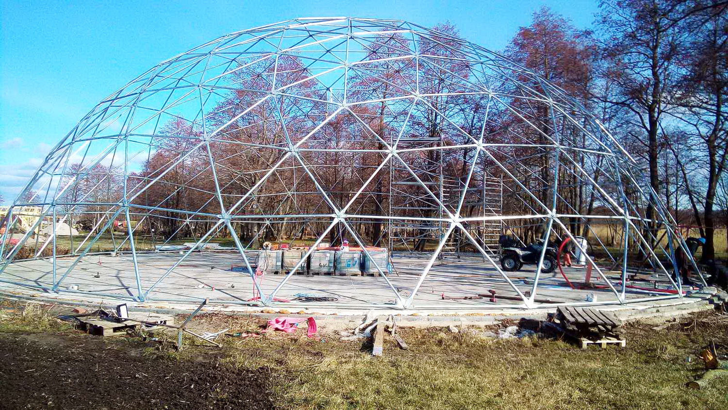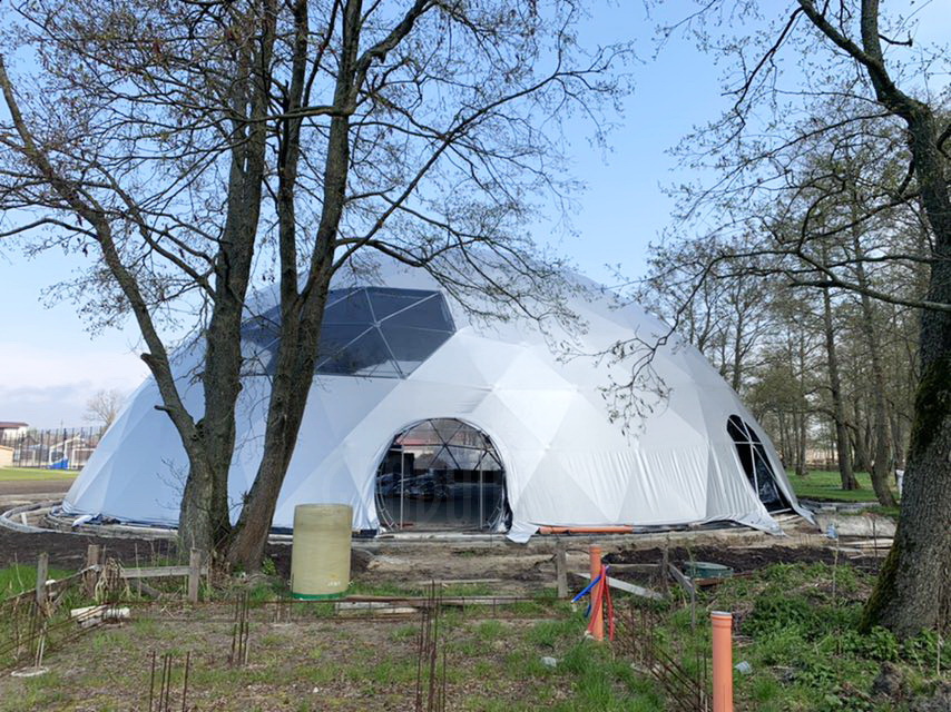 The geodesic dome structure allows you to create a light, well protected and very stable space. The main advantage of geodesic domes is the even distribution of stresses in all frame nodes.