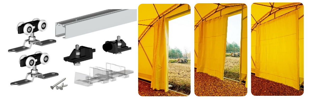 - Aesthetics. From the range of colors, you can easily choose the tent gate curtains that best match the exterior of the garage domes.