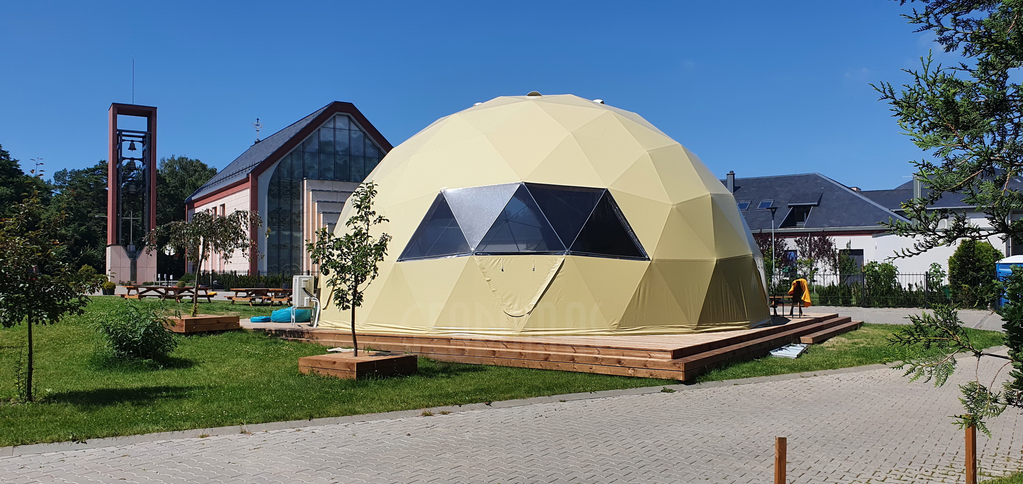 Glamping Domes do not require any columns, load walls or columns inside to allow the customers to use the maximum available area. By using steel structural elements structure becomes sustainable in terms of weather factors, livetime and loads.- The structures can be connected with tunnel paths;